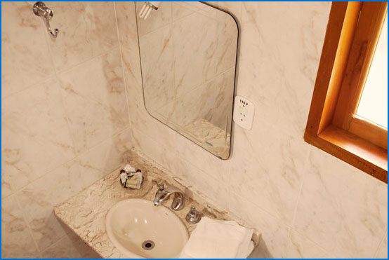 As dependências mais íntimas O banheiro foi feito para que você continue tendo a mesma sensação de bem estar oferecido no restante do chalé, queremos que sua satisfação continue sempre, desde quando chegar até quando já estiver a caminho de casa. ![]() |