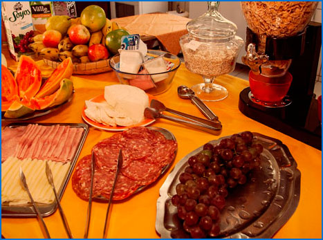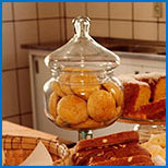 Café da manhã servido em um aconchegante salão, das 8h às 11h, self service com deliciosos quitutes, feitos com carinho para atender nossos clientes.