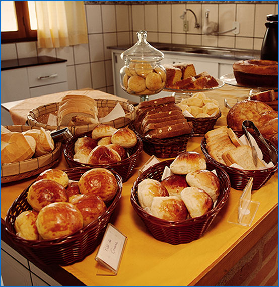 Café da manhã servido em um aconchegante salão, das 8h às 11h, self service com deliciosos quitutes, feitos com carinho para atender nossos clientes.